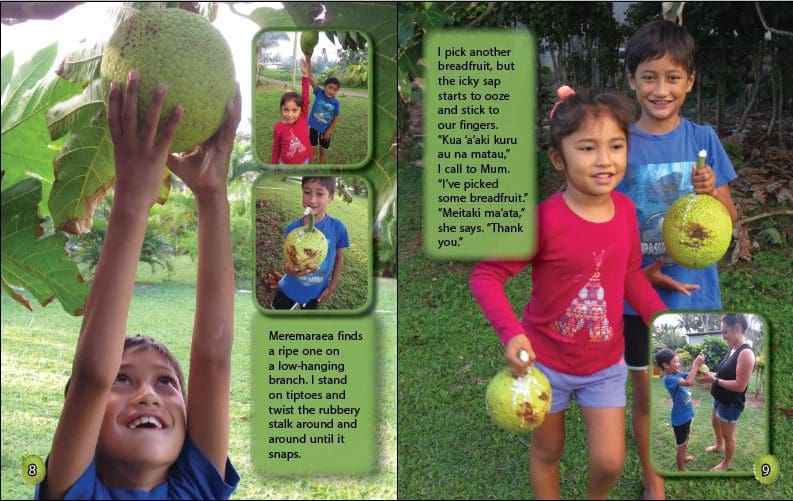 Kahina and his sister pick breadfruit for their mother because she has promised to make breadfruit chips for their tea.
